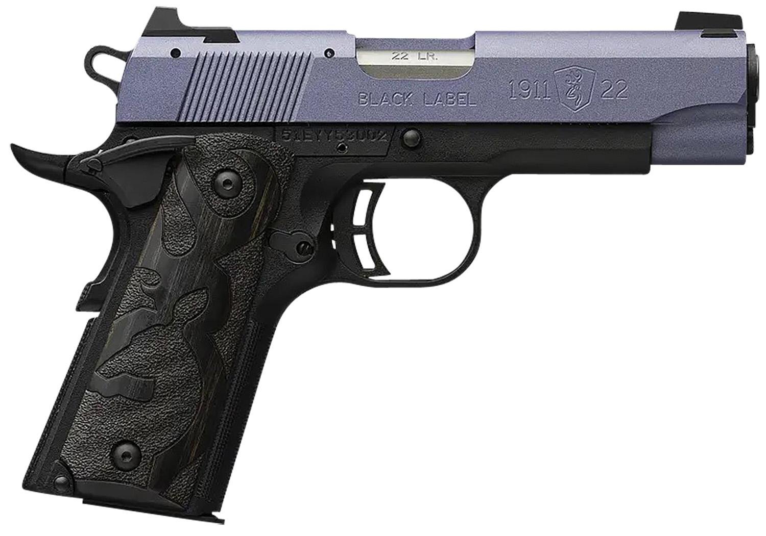 Browning 1911-style, autoloading 22 LR pistol with Copper Cerakote finish on the aluminum alloy slide. Metal 3-dot sights, black stippled laminated wood grips with Buckmark. Lightweight composite frame with aluminum sub-frame.