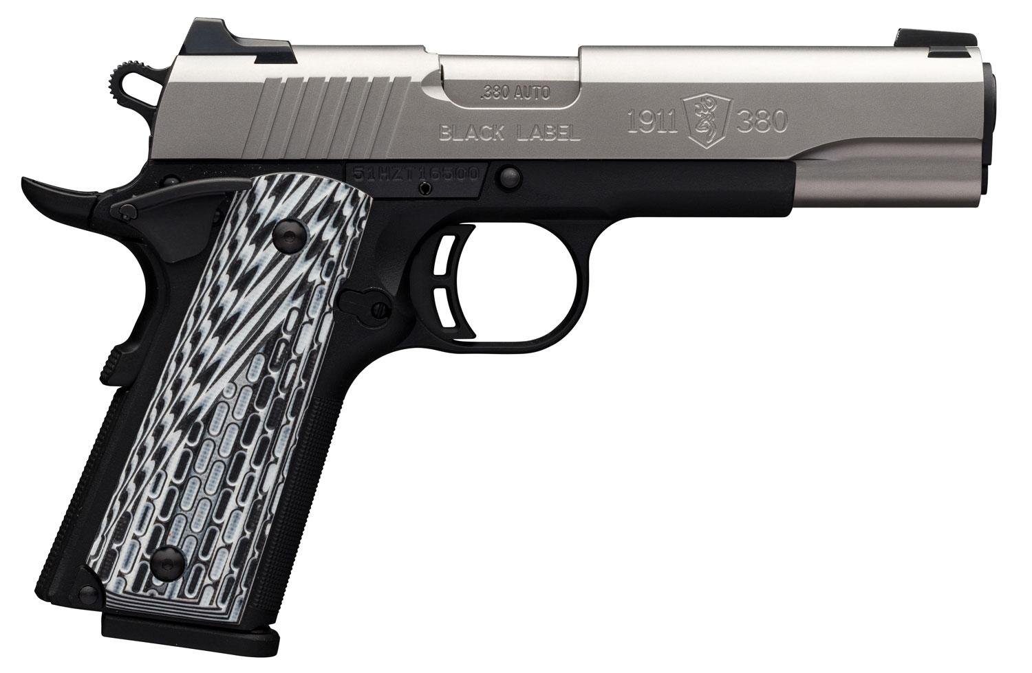 Browning 051928492 1911-380 Black Label Pro Compact Single 380 Automatic Colt Pistol (ACP) NS 3.62″ 8 1 Black G10 Grip Stainless Steel
