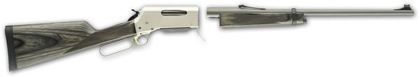 Receiver is made of aircraft grade alloy and comes with a satin nickel finish. It is drilled and tapped for scope mounts. Barrel comes in a matte stainless steel finish, crowned muzzle, adjustable sights. Lever action, rotating bolt, detachable box magazine. Satin finish gray laminated wood stock with a checkered straight grip. Features a recoil pad.