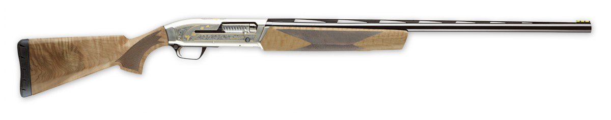Sport shooters like a shotgun with some degree of engraving on the receiver, because the shotguns are on display at sporting shoots, and participants like to show them off. And we can’t blame them. Standing out on the gun rack is the new Browning Maxus Sporting. We feel, of course, that any Browning model shotgun will be outstanding, both in appearance and in performance regardless of model. This new model is sure to catch the eye, with its laser engraving of game birds transforming into clay birds. Quail are on the right side, and a mallard duck on the left. But the new gun is not just for show. On the inside, the Maxus Sporting is gas-operated with a 3″ chamber, so here is a gun you can take to the field as well. The Power Drive Gas System reduces recoil and cycles a wide array of loads. It’s available in a 28″ or 30″ barrel length. The high grade walnut stock and forearm are generously checkered, finished with a deep, high gloss. The stock is adjustable and one 1/4″ stock spacer is included. For picking up either clay or live birds quickly, the HiViz Tri-Comp fiber-optic front sight with mid-bead ivory sight does a great job, gathering light on the most overcast days. Shoulder one at your local dealer, and start a day at the range showing off and hitting more targets with the new Browning Maxus Sporting.