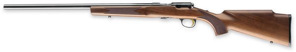 Browning 10 + 1 17 HMR TBolt Target Varmint/22″ Barrel/Satin Walnut Stock We all remember the first time squeezing a trigger, usually consisting of simply plinking a few tin cans. For some of us, those first shots were from an original Browning T-Bolt, one of the most accurate, handy and easy to shoot rimfires ever produced. Those days can now be relived with todays T-Bolt, a rifle every bit the equal of the original, with several exciting new features that put this unique rifle in a class by itself. These modern versions rely on the classic straight pull bolt action design to chamber each cartridge fed from a 10 round rotary box Double Helix magazine. The T-Bolts three-lever trigger offers a light, crisp break, and every barrel is free floating. For 2007, those of you who are serious about rimfire accuracy will appreciate the new T-Bolt Target/Varmint model. It features a walnut stock with raised Monte Carlo comb and a heavy varmint barrel designed to provide pinpoint accuracy that rivals many custom rimfires costing much more.
