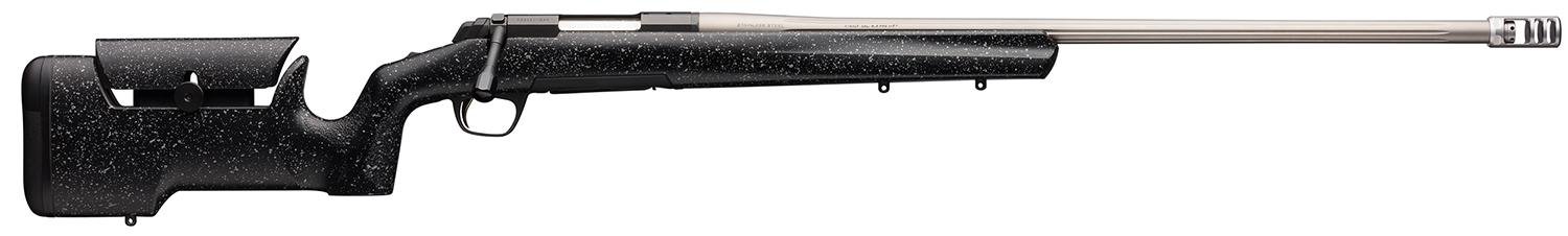 The X-Bolt builds on past Browning rifles, and adds numerous improvements that place the X-Bolt at the top. The X-Bolt’s new three-lever Feather Trigger provides a clean, crisp pull with no take-up or creep and minimal overtravel. The X-Bolt is free-floated by bedding the front and rear of the action for stability and to help maintain barrel to stock spacing for consistent accuracy. A recessed muzzle crown helps protect the rifling from damage. The Pachmayr Decelerator recoil pad has proprietary construction and material to promote a directional deflection of recoil forces, pulling the stock comb away from your face to reduce felt recoil and muzzle climb. The bolt unlock button works in conjunction with the top-tang safety to provide an added measure of safety during checking and unloading of the chamber. This Mountain Pro Long Range model features a carbon fiber stock with accent graphics, cerakote tungsten metal finish, spiral fluted & lapped barrel, and Recoil Hawg muzzle brake.