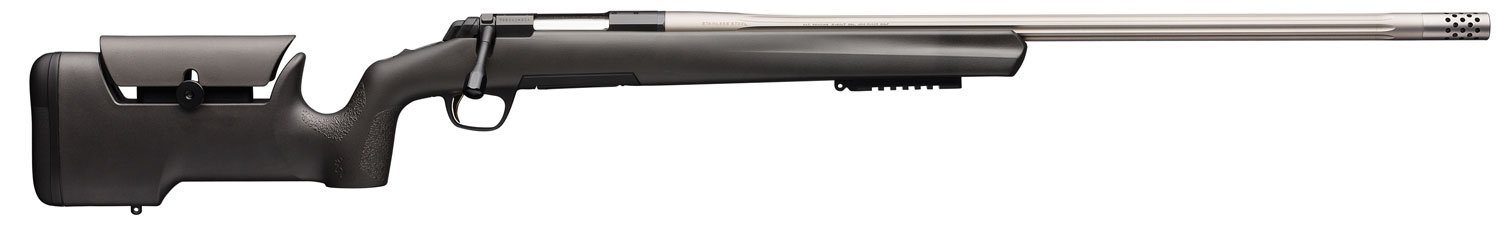 The X-Bolt builds on past Browning rifles, and adds numerous improvements that place the X-Bolt at the top. The X-Bolt’s new three-lever Feather Trigger provides a clean, crisp pull with no take-up or creep and minimal overtravel. The X-Bolt is free-floated by bedding the front and rear of the action for stability and to help maintain barrel to stock spacing for consistent accuracy. A recessed muzzle crown helps protect the rifling from damage. The Inflex 2 recoil pad has proprietary construction and material to promote a directional deflection of recoil forces, pulling the stock comb away from your face to reduce felt recoil and muzzle climb. The bolt unlock button works in conjunction with the top-tang safety to provide an added measure of safety during checking and unloading of the chamber. The X-Bolt Max Varmint/Target features a matte black Max composite stock with adjustable comb, length of pull spacers and vertical pistol grip; ideal for long range shooting, match grade stainless steel bull barrel with fluting, extended bolt handle and fore-end rail.