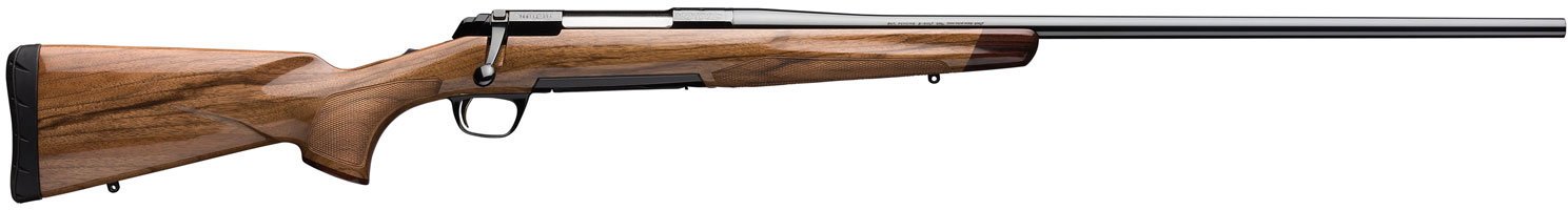 The X-Bolt Medallion French Walnut with a light colored, dark grained AA grade French walnut stock with rosewood pistol grip and fore-end cap, polished barrel with roll engraving on the receiver. The X-Bolt builds on past Browning rifles, and adds numerous improvements that place the X-Bolt at the top. The X-Bolt’s new three-lever Feather Trigger provides a clean, crisp pull with no take-up or creep and minimal overtravel. The X-Bolt is free-floated by bedding the front and rear of the action for stability and to help maintain barrel to stock spacing for consistent accuracy. A recessed muzzle crown helps protect the rifling from damage. The Inflex 1 recoil pad has proprietary construction and material to promote a directional deflection of recoil forces, pulling the stock comb away from your face to reduce felt recoil and muzzle climb. The bolt unlock button works in conjunction with the top-tang safety to provide an added measure of safety during checking and unloading of the chamber.