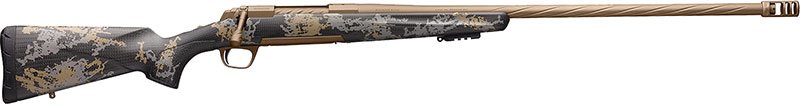 The X-Bolt builds on past Browning rifles, and adds numerous improvements that place the X-Bolt at the top. The X-Bolt’s new three-lever Feather Trigger provides a clean, crisp pull with no take-up or creep and minimal overtravel. The X-Bolt is free-floated by bedding the front and rear of the action for stability and to help maintain barrel to stock spacing for consistent accuracy. A recessed muzzle crown helps protect the rifling from damage. The Pachmayr Decelerator recoil pad has proprietary construction and material to promote a directional deflection of recoil forces, pulling the stock comb away from your face to reduce felt recoil and muzzle climb. The bolt unlock button works in conjunction with the top-tang safety to provide an added measure of safety during checking and unloading of the chamber. This Mountain Pro Long Range model features a carbon fiber stock with accent graphics, cerakote burnt bronze metal finish, spiral fluted & lapped barrel, and Recoil Hawg muzzle brake.