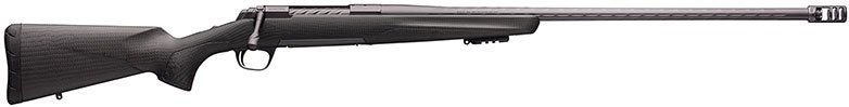 The X-Bolt builds on past Browning rifles, and adds numerous improvements that place the X-Bolt at the top. The X-Bolt’s new three-lever Feather Trigger provides a clean, crisp pull with no take-up or creep and minimal overtravel. The X-Bolt is free-floated by bedding the front and rear of the action for stability and to help maintain barrel to stock spacing for consistent accuracy. A recessed muzzle crown helps protect the rifling from damage. The Pachmayr Decelerator recoil pad has proprietary construction and material to promote a directional deflection of recoil forces, pulling the stock comb away from your face to reduce felt recoil and muzzle climb. The bolt unlock button works in conjunction with the top-tang safety to provide an added measure of safety during checking and unloading of the chamber. This Pro Long Range model features a carbon fiber stock, carbon gray elite cerakote metal finish, skip fluted sporter barrel, and Recoil Hawg muzzle brake with thread protector.