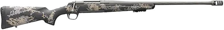 Bolt-action precision hunting rifle with carbon fiber stock with accent graphics, Cerakote Tungsten finish on a stainless steel barrel and action, spiral fluted bolt, spiral fluted and lapped sporter barrel, threaded muzzle, Recoil Hawg muzzle brake and thread protector included.