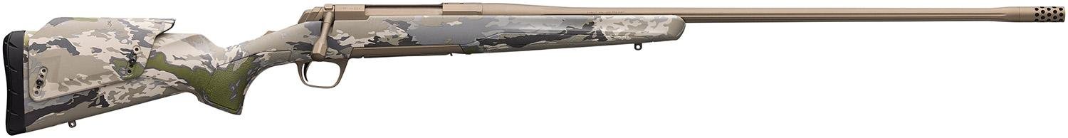 Bolt-action hunting rifle optimized for accuracy at longer ranges. Features a fluted sporter contour barrel, composite stock with OVIX camouflage, Cerakote Smoked Bronze finish on the barrel and action , threaded muzzle brake, detachable rotary magazine, short throw bolt, adjustable trigger.