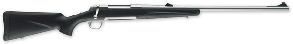 The X-Bolt Stainless Stalker has a receiver with stainless steel; glass bedded. Drilled and tapped for scope mounts. A stainless steel barrel, matte finish, free floating, and hand chambered, target crown. The Bolt action, 60 degree bolt lift, has a adjustable Feather Trigger and detachable rotary magazine. Top tang safety with bolt unlock button. Composite stock, matte black with Dura Touch Armor Coating.