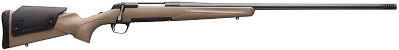 The Browning X-Bolt Stalker Long Range rifle features a High strength steel receiver, long range heavy sporter contour barrel, removable muzzle brake, removable magazine, top-tang thumb safety, extended bolt handle, composite stock in flat dark earth color with black adjustable comb.